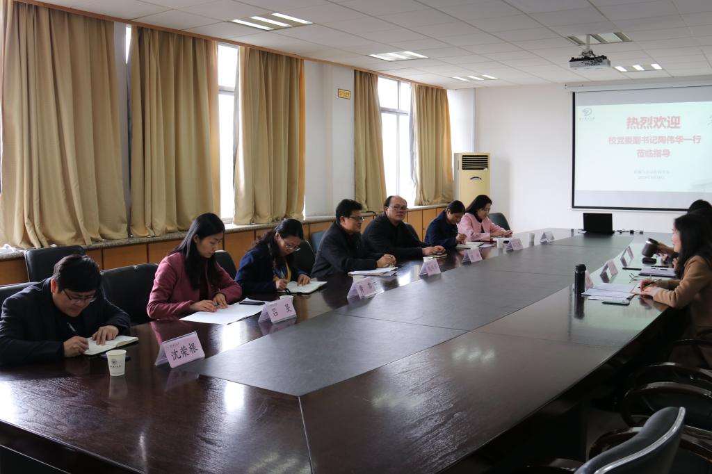 陶伟华认真听取了学院的汇报,并对机控学院近年来在学科建设、人才培养、学生工作上取得的成绩给予了肯定。同时,他指出,不仅要重视思政课程、思政队伍的建设,还要积极寻求“课程思政”理念的现实途径。他还特别指出,今年由我校承办“挑战杯”,要抓住机会,积极培育科研项目。