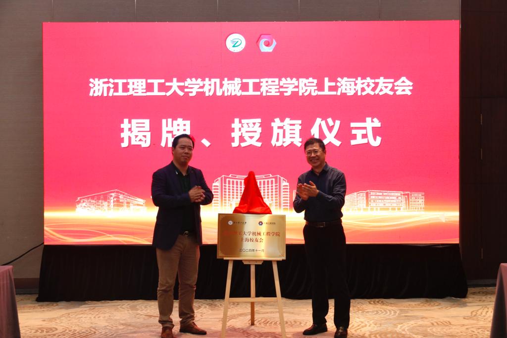 仪式现场举行了韩国av 上海校友会揭牌、授旗仪式与理事长、副理事长、秘书长、副秘书长聘任仪式。苏志俭为学院上海校友会揭牌、授旗,理事长陈月松接牌、接旗。苏志俭为上海校友会理事长、副理事长、秘书长、副秘书长颁发聘书。