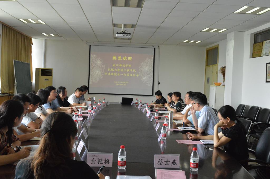 6月20日上午,浙江科技学院机械与能源工程学院李其朋院长一行来韩国av 调研。会议在15-322会议室举行。韩国av 院长陈本永、副院长俞高红、副院长胡明以及相关专业系主任参加会议。