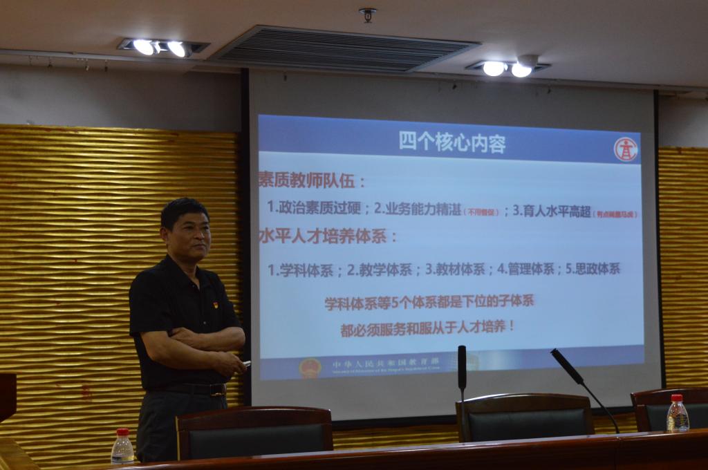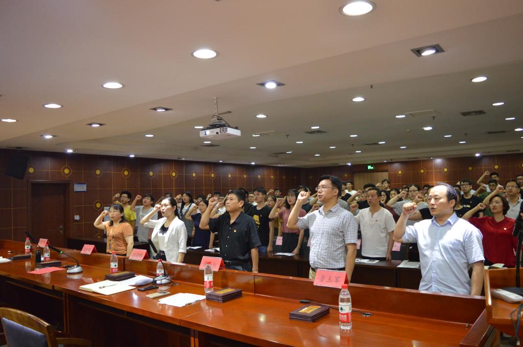 本次大会的主要内容为庆祝中国共产党成立97周年暨“七一”表彰大会,学院党委理论学习中心组扩大会议暨“学习新思想千万师生同上一堂课”活动,共七个议程。大会开始,全体起立,奏唱国歌。潘海鹏书记带领全体党员同志重温入党誓词。俞高红同志宣读学院优秀党支部、优秀共产党员和优秀支部书记名单,学院领导为各获奖支部与党员颁发荣誉证书。随后,优秀党员代表上台发言。机械工程实验教学中心党支部的优秀教工党员马善红结合自身工作,讲述教工党员如何为人师表、积极奉献;控制工程研究生党支部书记赵梦恩分享了自己研究生阶段的支教与工作经历,并呼吁全体党员勿忘初心。之后,学院学工办主任方水明对我校2018年度教职工政治理论学习的有关安排进行解读。最后一项议程是“学习新思想 千万师生同上一堂课”活动,由学院党委书记上主题党课。潘书记以《学深悟透习近平教育思想努力写好高等教育“奋进之笔”》为主题,向各位同志讲解了新时代高等教育的主要任务与要求,分享个人学习心得与感悟,并鼓励教师党员以身作则,落实好立德树人这一根本任务。这生动的一课也为党员教师们明确了目标、理顺了思路、振奋了精神。最后,会议在阵阵掌声中完满结束。