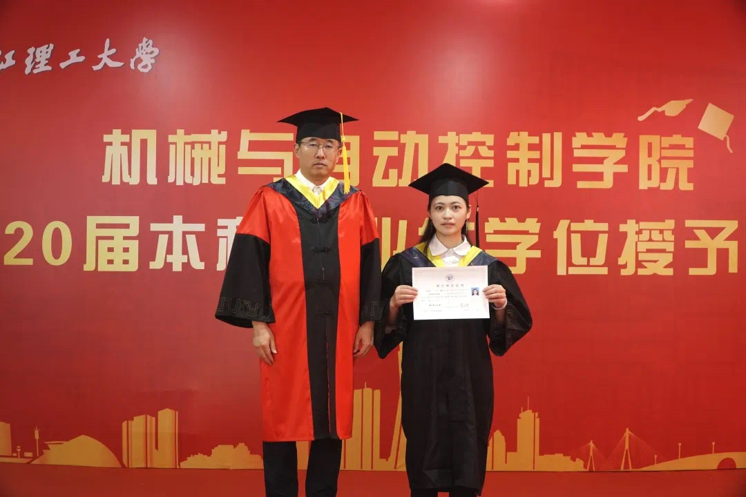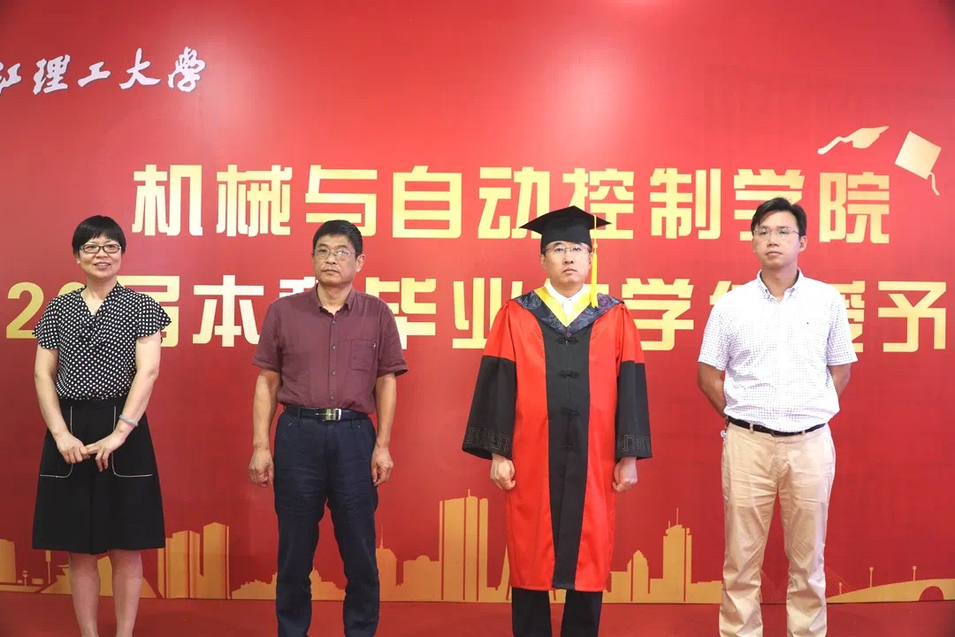 仪式上,院长陈本永教授为每位毕业生扶正流苏、颁发学位证书并一一合影留念。仪式在易班平台同步“云”直播,学院师生通过线下参与、线上观礼的形式参与这场别开生面的学位授予仪式。