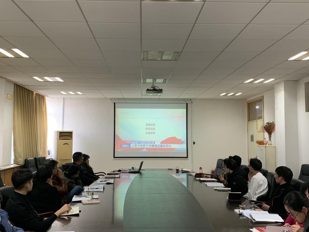 小组在15-322会议室召开集中自学会,学院党政领导、“双高双强”型年轻干部、师生党支部书记、组织员等参与学习。