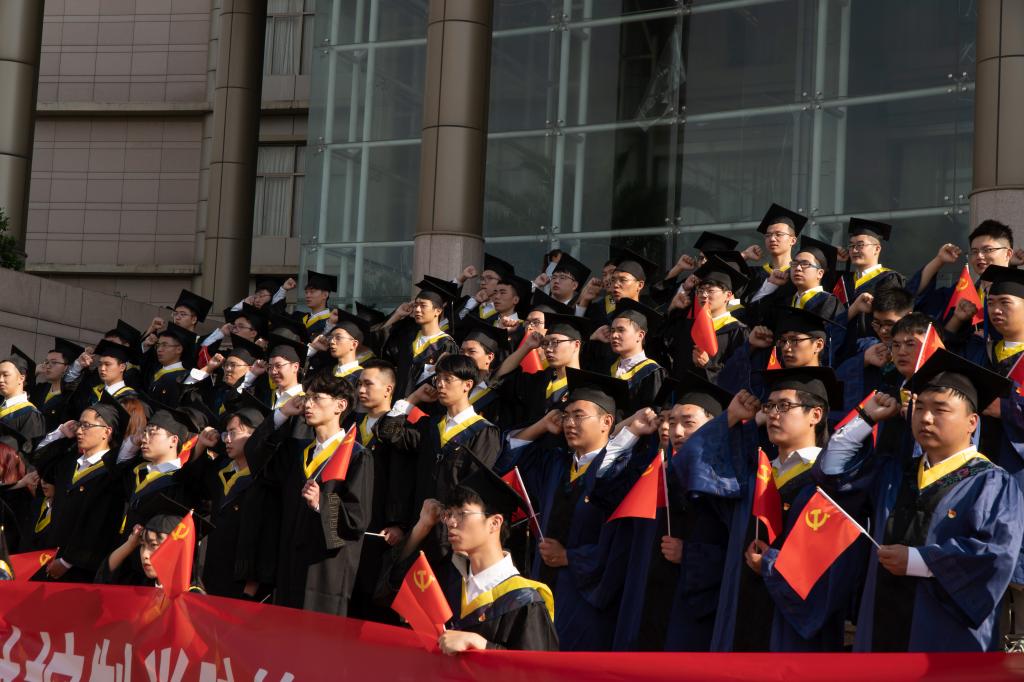 召开了一场别开生面的毕业生党员教育大会,百名毕业生党员齐聚校世纪广场,高唱《没有共产党就没有新中国》,献礼建党百年华诞。学院党委副书记王吴芳、全体辅导员、学生党支部书记共同参与此次大会。