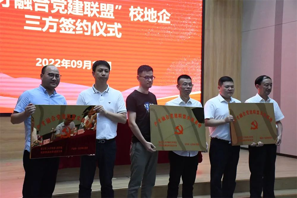 董敢部长与苏志俭书记共同为校地企“产才融合党建联盟”揭牌