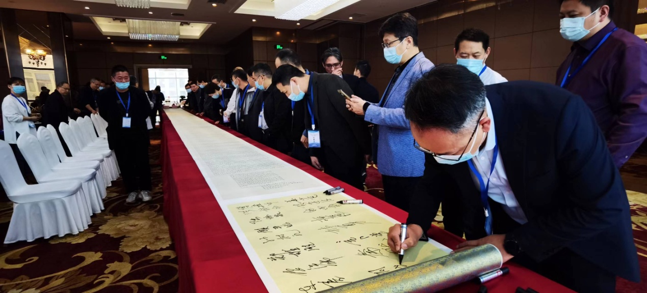 据悉,大会组织全体与会人员学习《共产党宣言》,在“共产党宣言”书写稿(书稿长19.21米,寓意中国共产党1921年建党)上签名留念,并带领所有参会代表参观浙江工业大学之江学院的绍兴工业互联网学院(研究院)、浙江精功科技股份有限公司等企业。