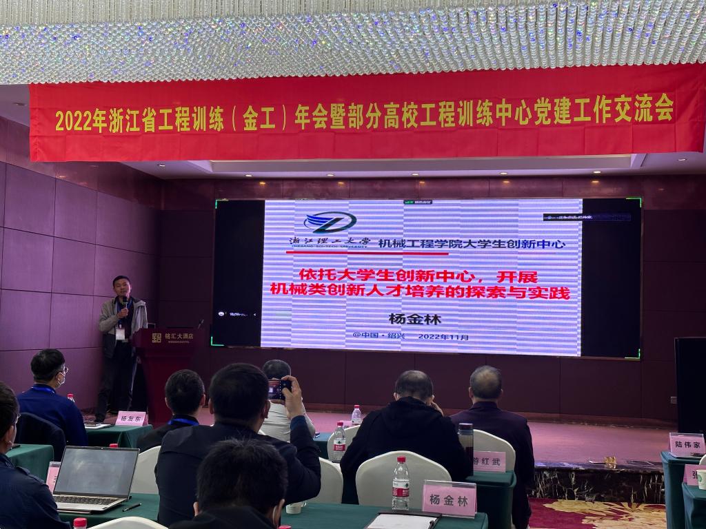 为认真学习宣传贯彻党的二十大精神,推动党建工作与业务工作融合发展,促进高校工程训练教学经验分享、资源共享,不断推进高等教育人才培养中工程训练教学改革与发展。11月26日至27日,浙江省工程训练(金工)年会暨部分高校工程训练中心党建工作交流会在浙江绍兴召开,我校金工训练中心主任、实验中心党支部书记杨金林受邀参会。浙江省工程训练教学指导委员会理事长、浙江大学工程训练中心主任傅建中教授、浙江工业大学之江学院院长姜少飞教授到会致辞。来自国内50多所高校的工程训练中心主任、党建工作者及部分教师代表、企业代表参加了线下、线上会议。会议由浙江省高等教育学会工程训练分会秘书长、浙江大学工程训练中心常务副主任张林初主持。