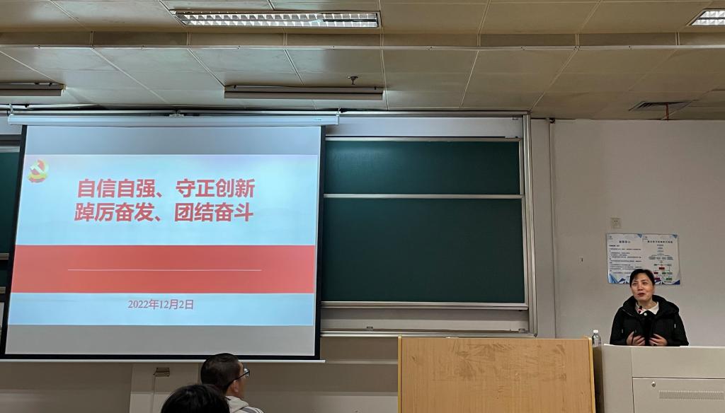 12月2日,形势与政策课堂上,许慧霞围绕“自信自强、守正创新,踔厉奋发、团结奋斗”的鲜明主题展开,首先讲述陈文兴校长作为党的二十大代表光荣参会的事迹,引出“党的二十大的概况”、“全面学习贯彻党的二十大精神的重要意义”、“如何全面准确学习领会党的二十大精神”三个方面内容,结合自身分管的教学工作,深入浅出,条理清晰地对党的二十大精神进行系统宣讲和深入解读。