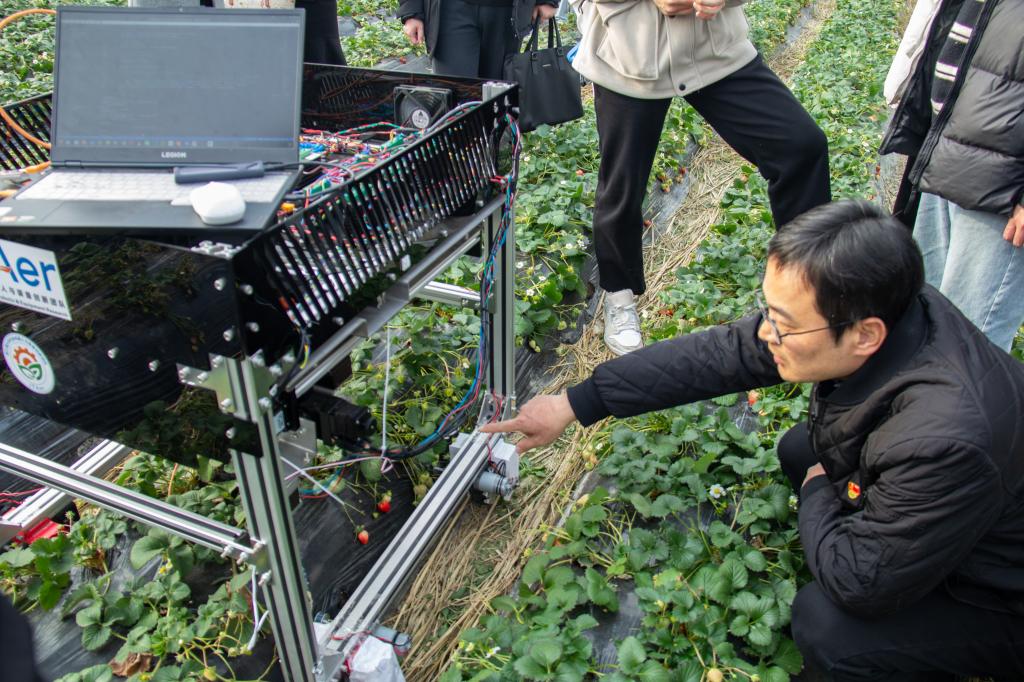 图像识别、精准定位、路径规划、精准采摘........农业机器人与装备创新团队教授杜小强教授正在手把手指导研究生测试研发的草莓采摘设备,“今天来到嘉善县,这座习近平总书记亲自谋划、亲自定题、亲自推动的县域高质量发展示范点考察学习,我们感受颇多,作为一名农业机械领域的研究者,我们知农、爱农、学农、用农,更教育引导更多的年轻一代专注农业机械研发,志愿用所学知识为浙江率先实现‘两个先行’贡献属于自己的一份力量”。