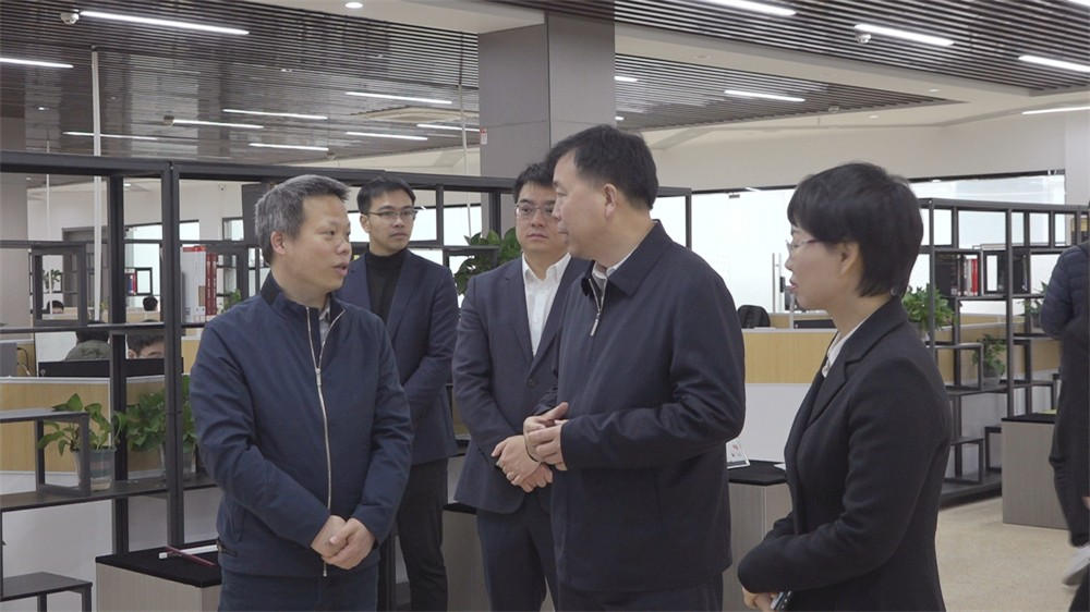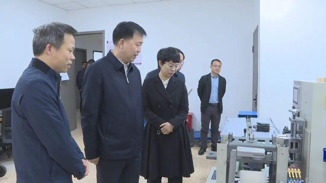 张振丰一行在彭来湖的带领下实地参观了龙港研究院产品展示区、分析检测中心,认真听取了彭来湖关于龙港研究院的工作进展汇报,重点了解平台建设发展、科研成果转化等方面的优势和成果。