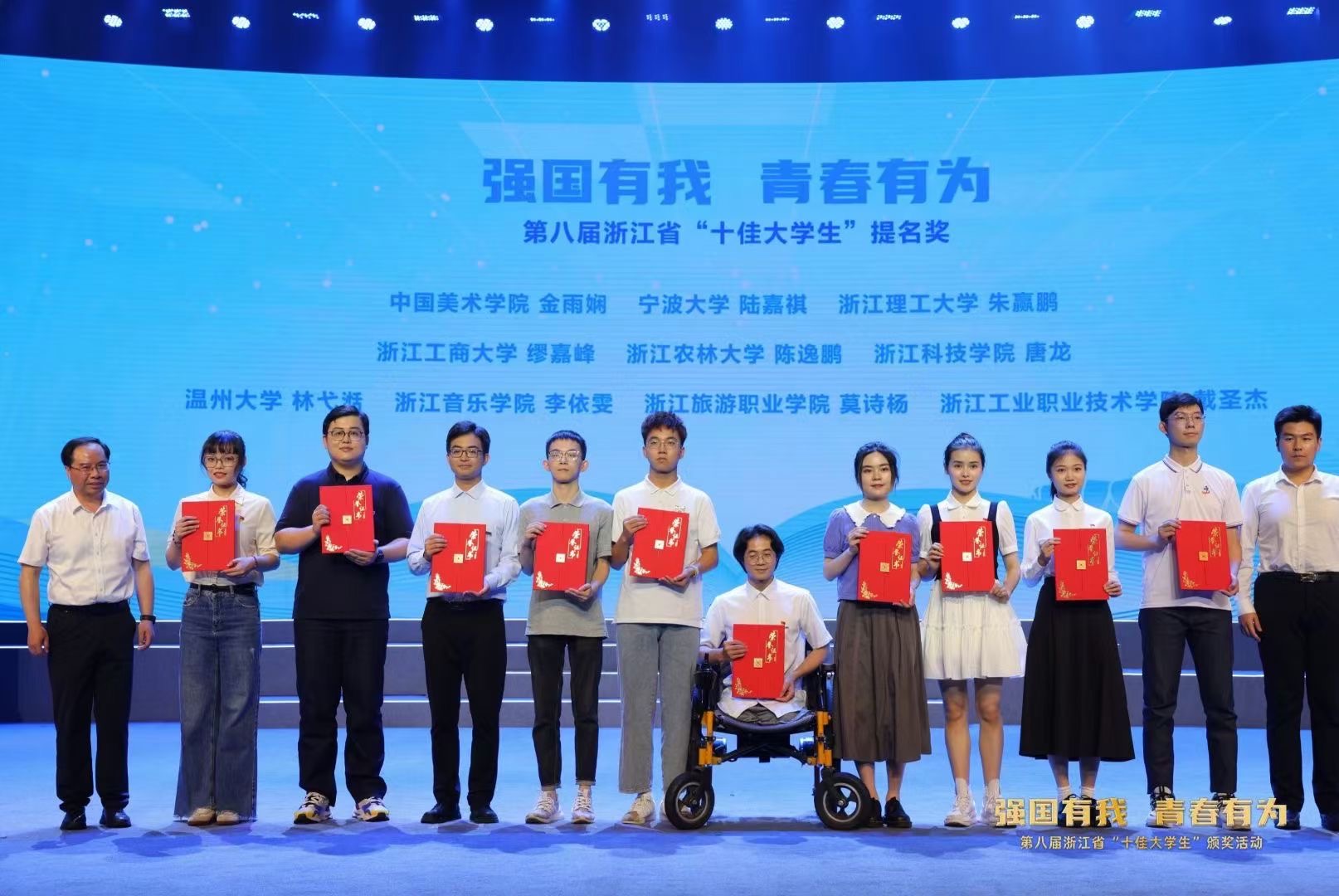 2019级机械工程专业博士生朱赢鹏荣获第八届浙江省“十佳大学生”提名奖。