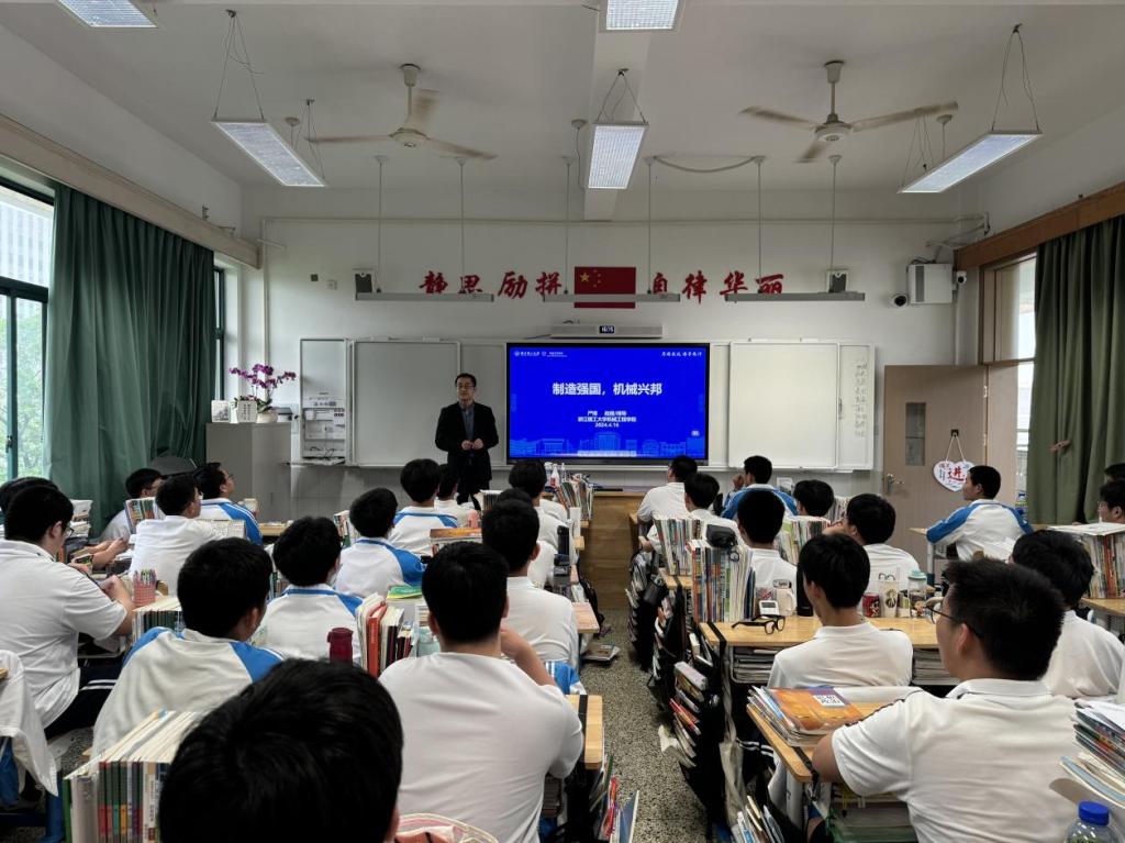 学术副院长严博教授应邀前往杭州市源清中学参加“浙理学科进中学”活动,并面向高二学生作题为《制造强国,机械兴邦》专业知识科普课程。