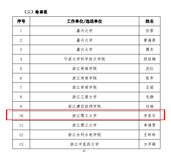 辅导员李家乐的书法作品《已亥杂诗》获入展奖、国画作品《墨荷图》获入选奖。