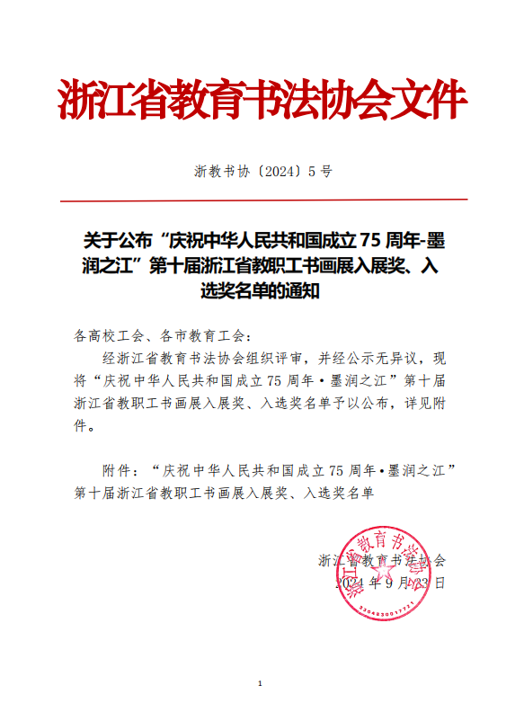 近日,由浙江省教育工会指导,浙江省教育书法协会主办的“庆祝中华人民共和国成立 75 周年·墨润之江”第十届浙江省教职工书画展作品征集工作已结束。经专家评审、公示和复核,韩国av