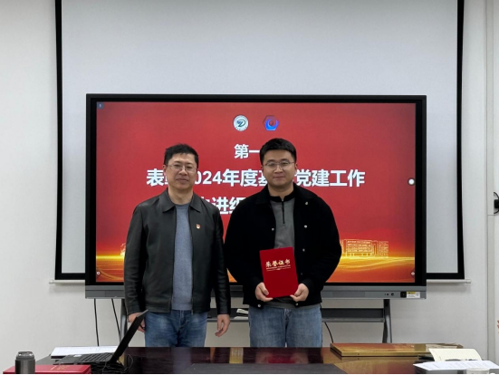 2024年度考核优秀党支部,学院党委委员、副院长向忠授“先进党支部”旗。