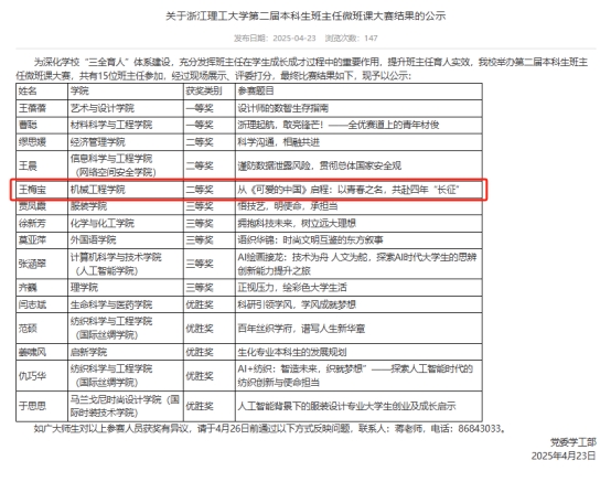 2023级智能制造工程1班班主任王梅宝凭借精心的内容设计和精彩的现场展演,荣获本次大赛二等奖。