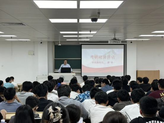 会上,副院长潘骏做考研动员讲话。他表示,结合近几年就业形势,考研是学生提升自身综合素质,增强就业竞争力的重要途径,对于个人成长和职业发展有着重要意义。他强调做好充分的备考准备是决胜考研的关键一步,建议同学们要有明确的备考节奏,有序地推进备考复习,做到踏踏实实复习,胸有成竹应考。