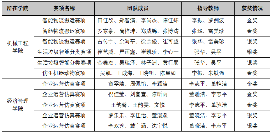 共派出11支队伍参赛,覆盖多个赛项,成绩斐然。具体获奖名单如下: