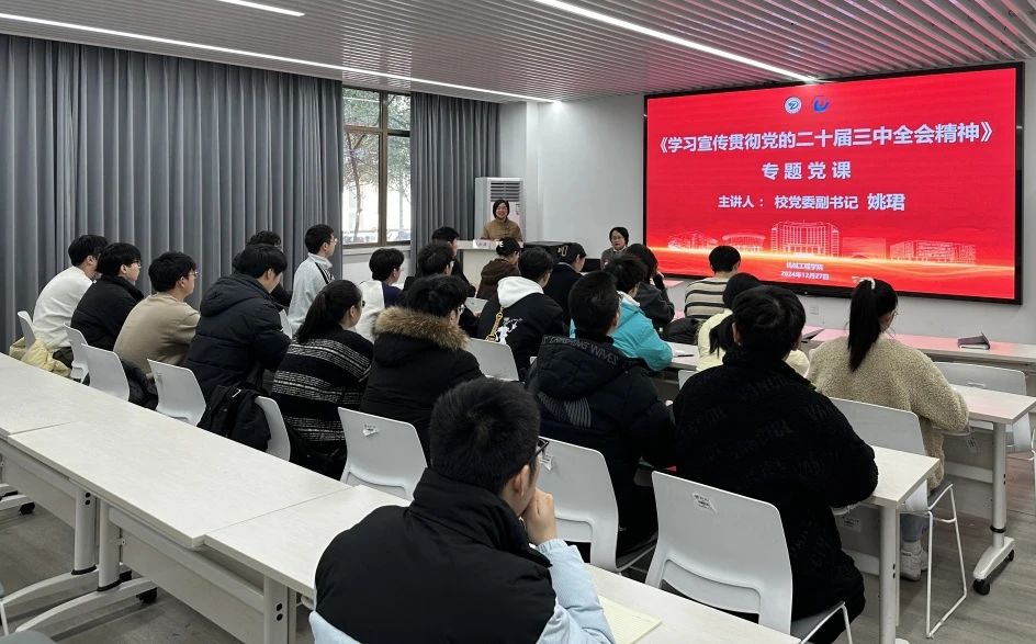 机械设计研究生第一党支部全体学生党员讲授《学习宣传贯彻党的二十届三中全会精神》专题党课,学院党委副书记陆秋萍主持会议。