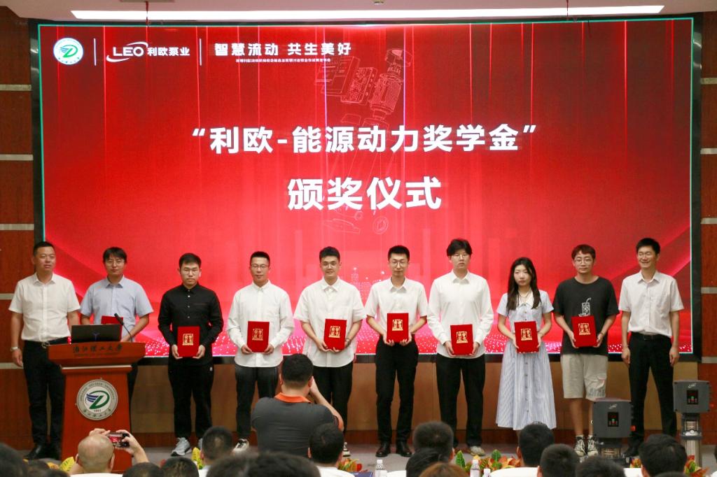 和利欧集团的校企深度合作表示高度认可。研究生院副院长徐阿进和利欧总裁办主任林仁勇为8位同学颁发了“2022-2023学年利欧-能源动力奖学金”。随后参与利欧深度合作的多位教师对合作成果进行了阶段汇报。利欧泵业产品管理部经理邱士军对校企合作产品进行发布,利欧泵业人力总经理梅宝平进行了利欧校招宣讲,最后利欧股份副总裁周晓礼对浙理利欧的校企合作以及本次活动进行了总结。会后利欧集团及企业相关人员前往15号楼114实验室参观试验台。